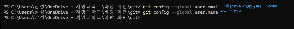 아래의 두 명령으로 기본적인 세팅을 진행해준다. -> 이는 깃을 누가 사용할 건지에 대한 등록이라고 보면 된다.